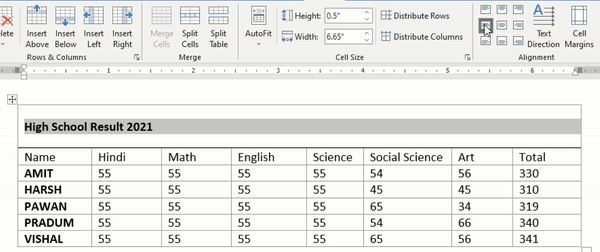 मान लीजिए हमने कोई Table बना रखी है और हम चाहते है की वह देखने में सुंदर हो समझने में आसान, इसके लिए Table में हम अपनी जरूरत के अनुसार अलग अलग Alignment उपयोग कर सकते हैं।